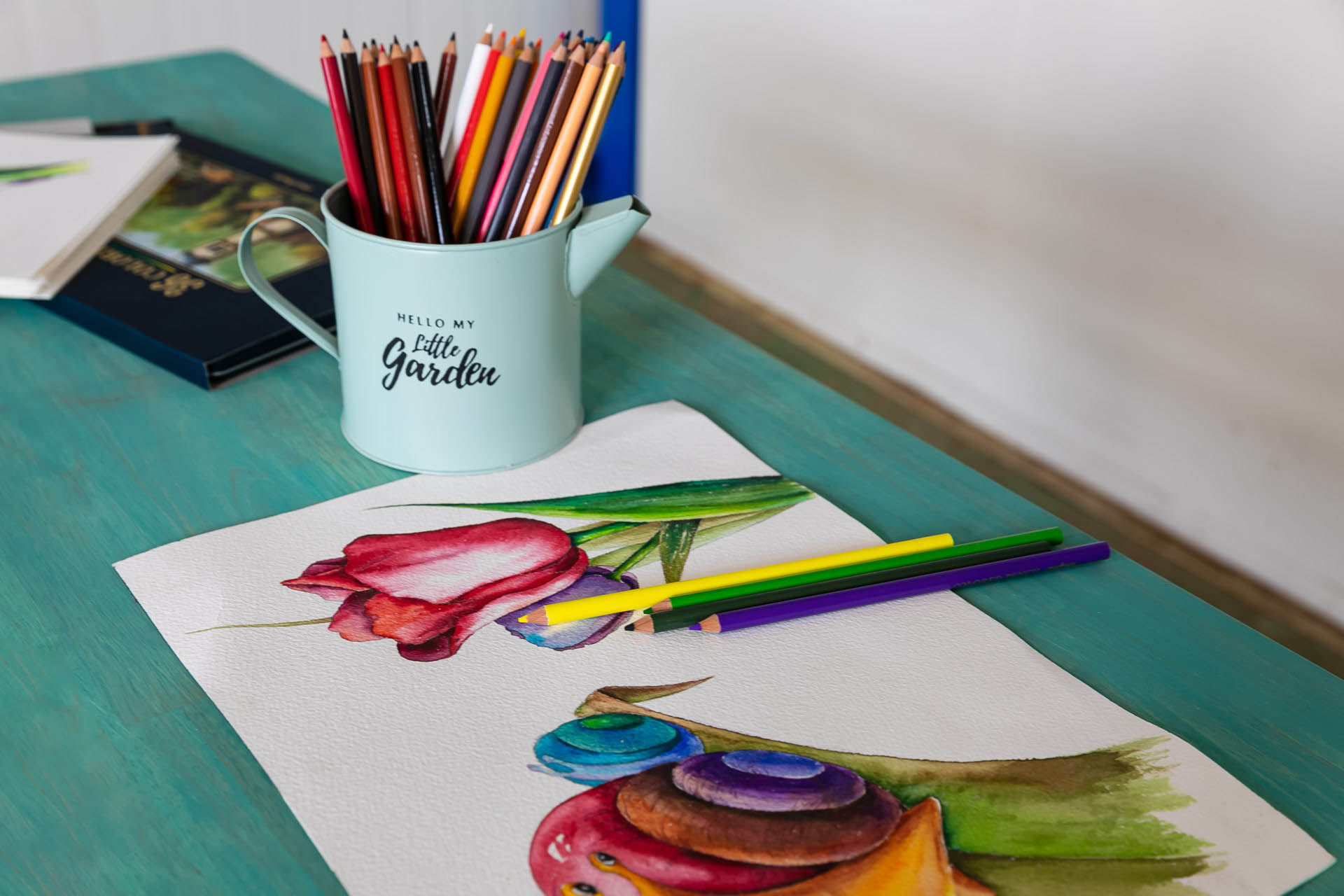수채색연필과 워터브러쉬를 사용한 꼬꼬농장의 여러 동 식물을 색칠해서 우편엽서 만들기